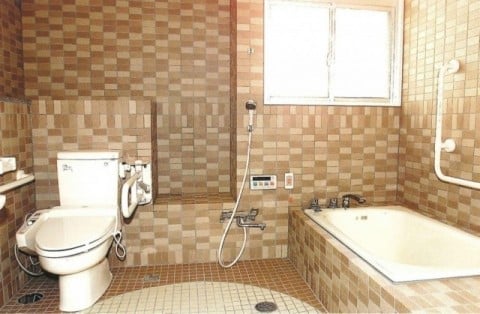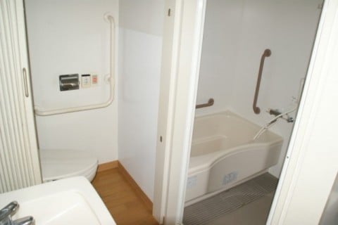 ・車いすでも使いやすいよう、タイル張りの浴室とトイレです。
